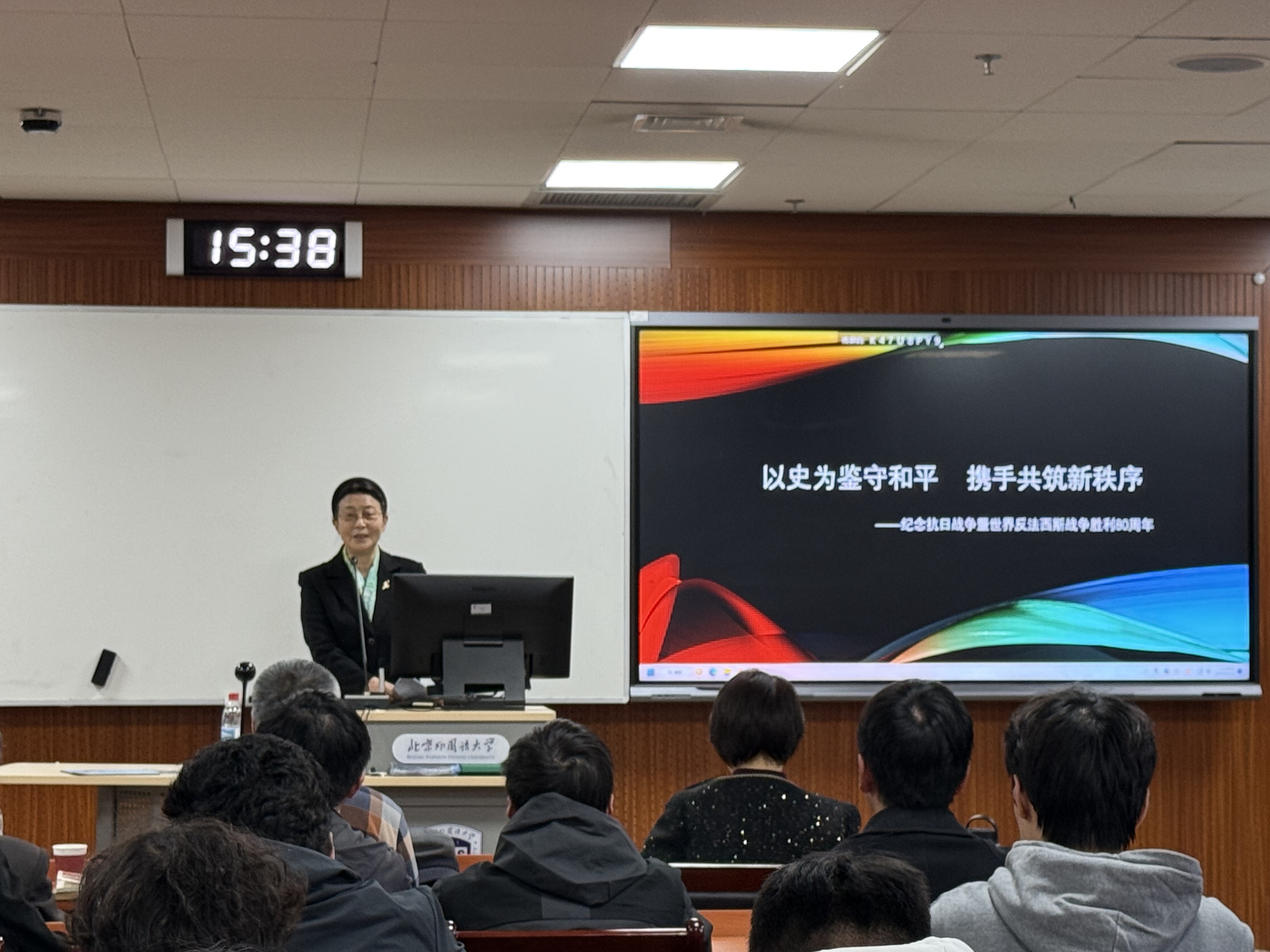 为深切缅怀革命先烈,传承红色基因,引导青年学子铭记历史、勇担使命,11月12日下午,必赢626net入口首页于国际大厦417教室隆重举办“铭记历史 赓续血脉 吾辈自强”——纪念中国人民抗日战争暨世界反法西斯战争胜利80周年报告会。学院党总支副书记刘玉华老师出席会议,学院全体大一员工、入党积极分子及党员代表参加活动。报告会由裴玉芳、汪玉林、吕才三位老师担任主讲,刘玉华老师主持。