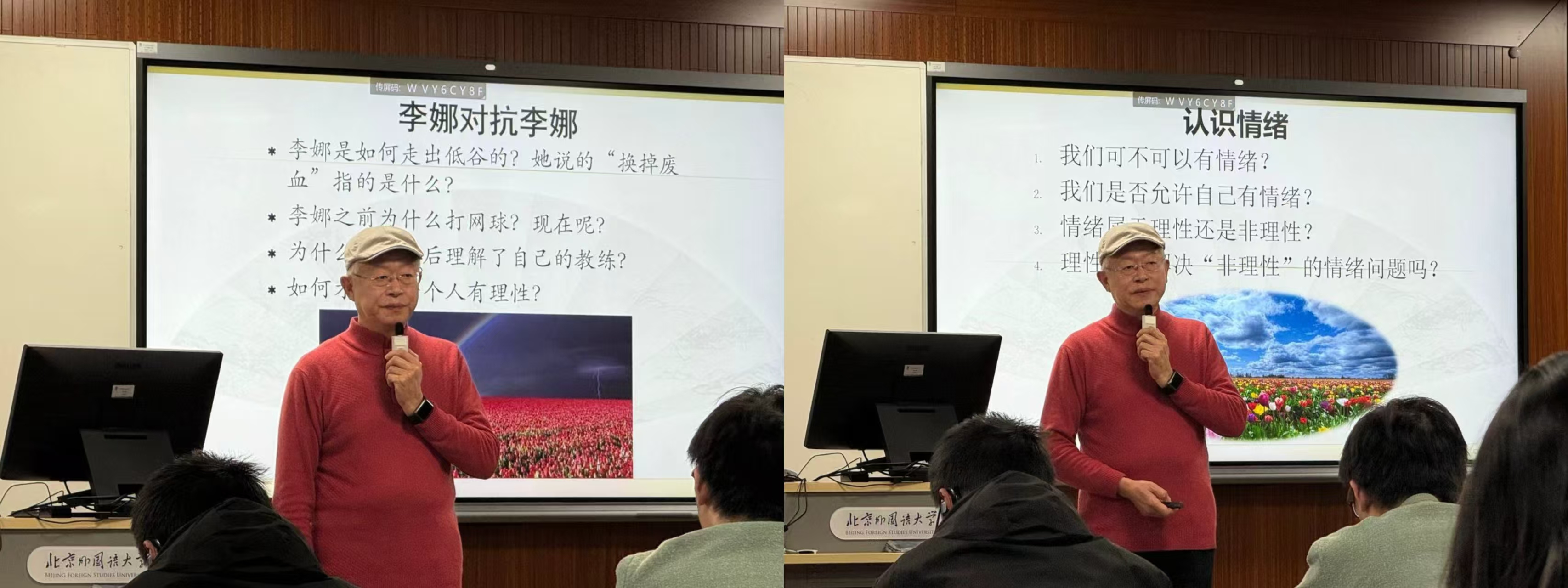 之后,郭老师以网球冠军李娜的成长经历为例,以“李娜对抗李娜”的自我斗争经历为切入点,深度剖析了这位运动健将成长经历背后折射出的情绪与心理问题。李娜从无法允许自己犯错、失败,犯错时对自己感到厌恶和痛恨、苛责自我,到找到情绪发泄办法、与自己和解、再登巅峰的心路故事,深深打动了在座每一位同学。同学们从这个真实的故事中体会到认识情绪、情绪管理对于个人成长的重要性。