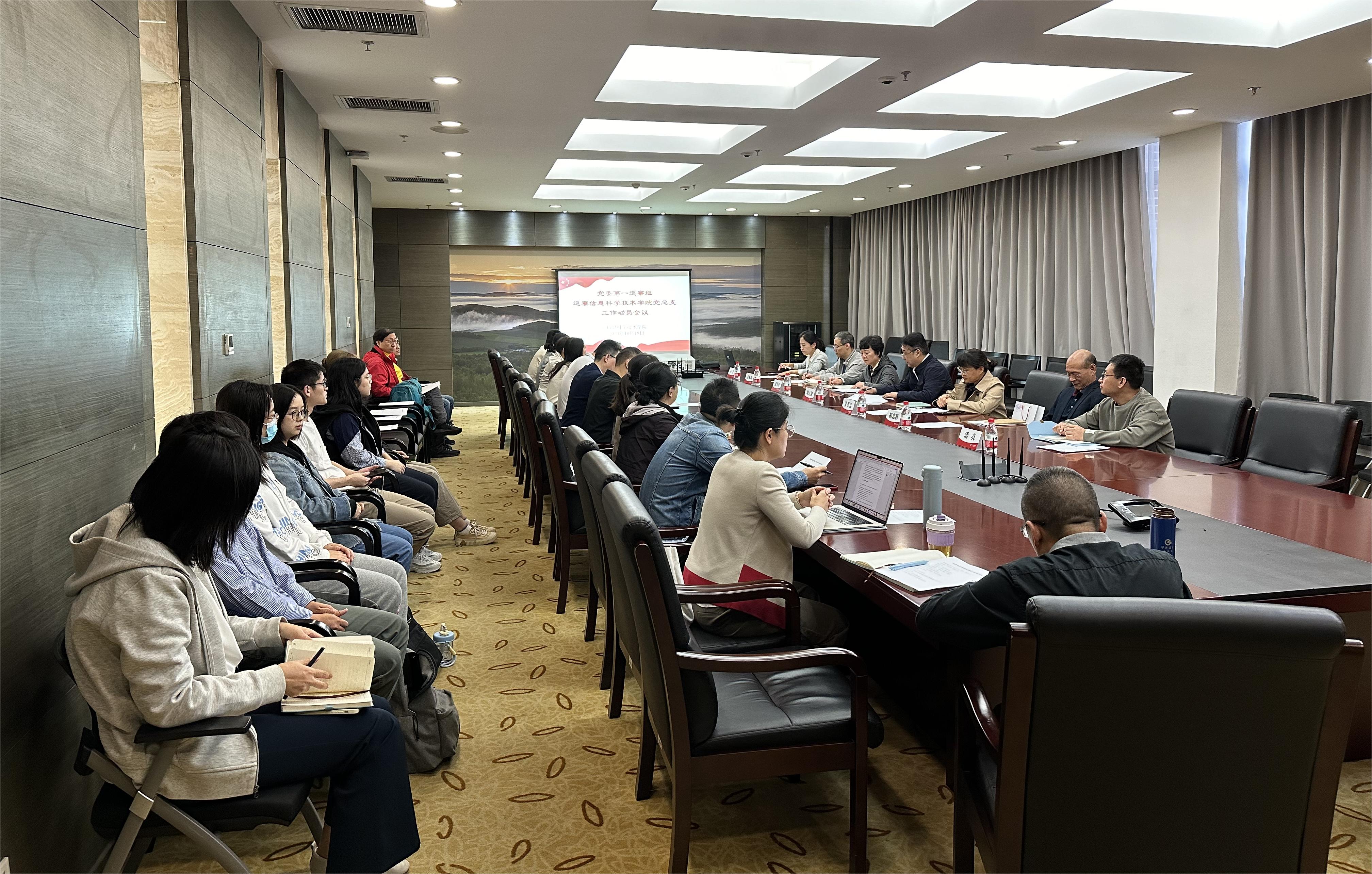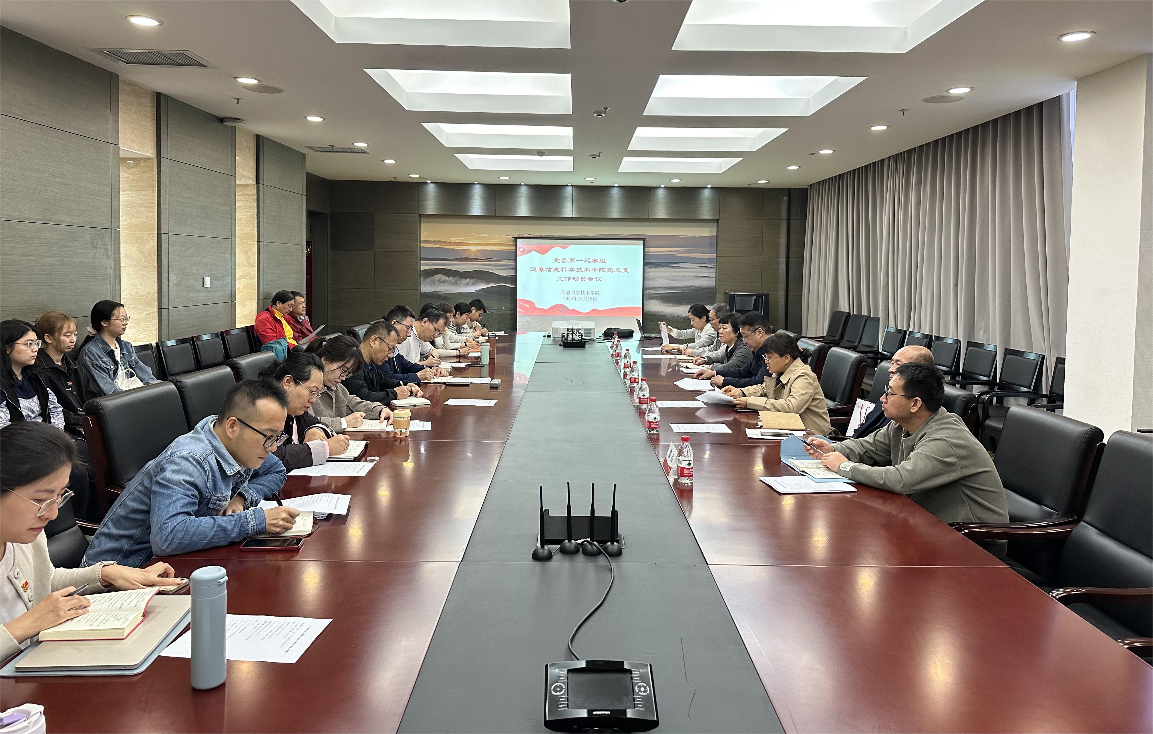 第一巡察组组长张荟霖做动员讲话,通报巡察工作重点任务、工作安排和工作要求。张荟霖指出,本轮巡察是学校党委对标对表党中央、教育部党组新精神新要求的首轮巡察,将聚焦高质量发展,围绕“教育强国,北外何为”命题,着力以高质量巡察推动事业高质量发展。巡察组将以“四个落实”为抓手,聚焦重点任务开展监督检查。巡察时间为三周左右。希望必赢626net入口首页党总支要把接受巡察监督作为一项重要的政治任务,学院领导班子成员和全体教职工要本着对党的事业高度负责的态度,积极支持配合巡察组工作,巡察组成员将严格依规依纪依法开展巡察,与信科学院党总支共同完成好学校党委交付的巡察任务。