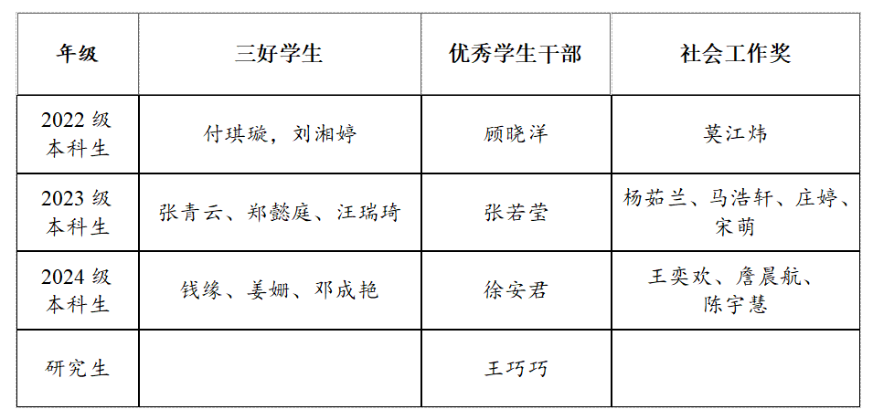 根据《必赢626net入口首页员工资助工作管理规定》《必赢626net入口首页员工评优工作条例》,结合学校《关于开展2024-2025学年三好员工、优秀员工干部、社会工作奖评审工作的通知》具体要求,经员工个人申报、班级推荐审核、学院评奖评优工作领导小组审定,学院2024-2025年度三好员工、优秀员工干部、社会工作奖评审结果如下(排名不分先后):